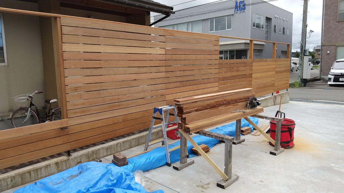 ようやくウッドフェンスが完成しました。(*^_^*)