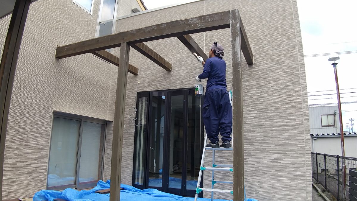 まず、既存の柱、梁に塗装を上塗りすることから始めました。