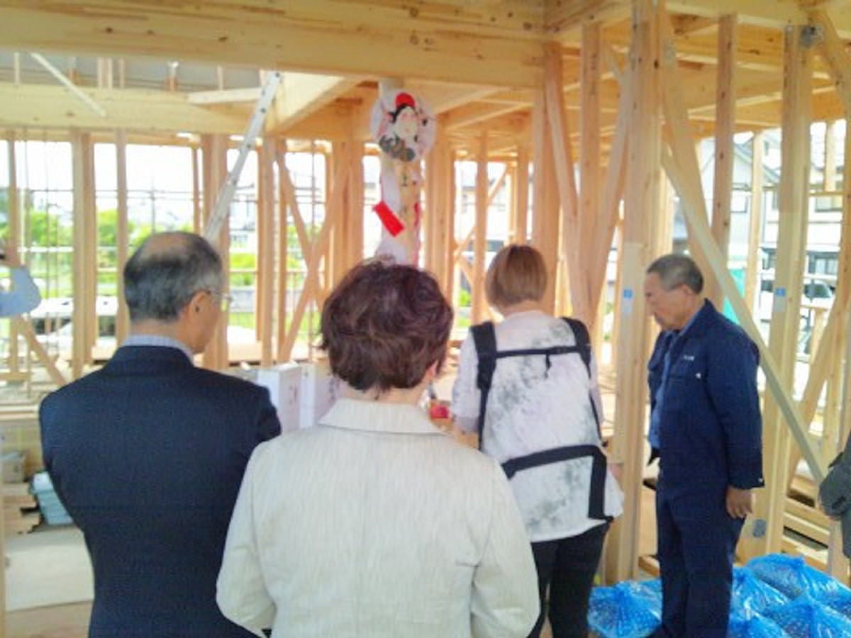 U様ご家族も集まり、上棟式は夕方から行われ、