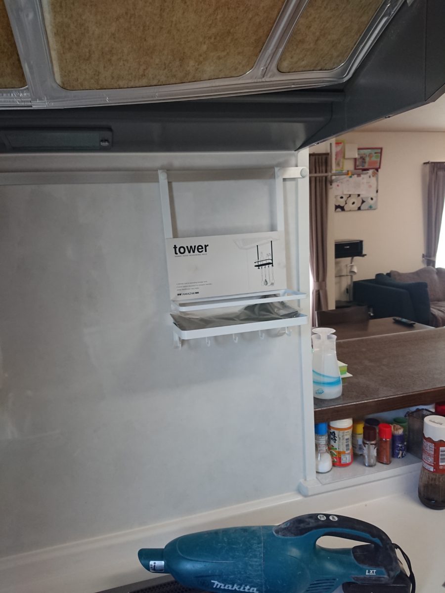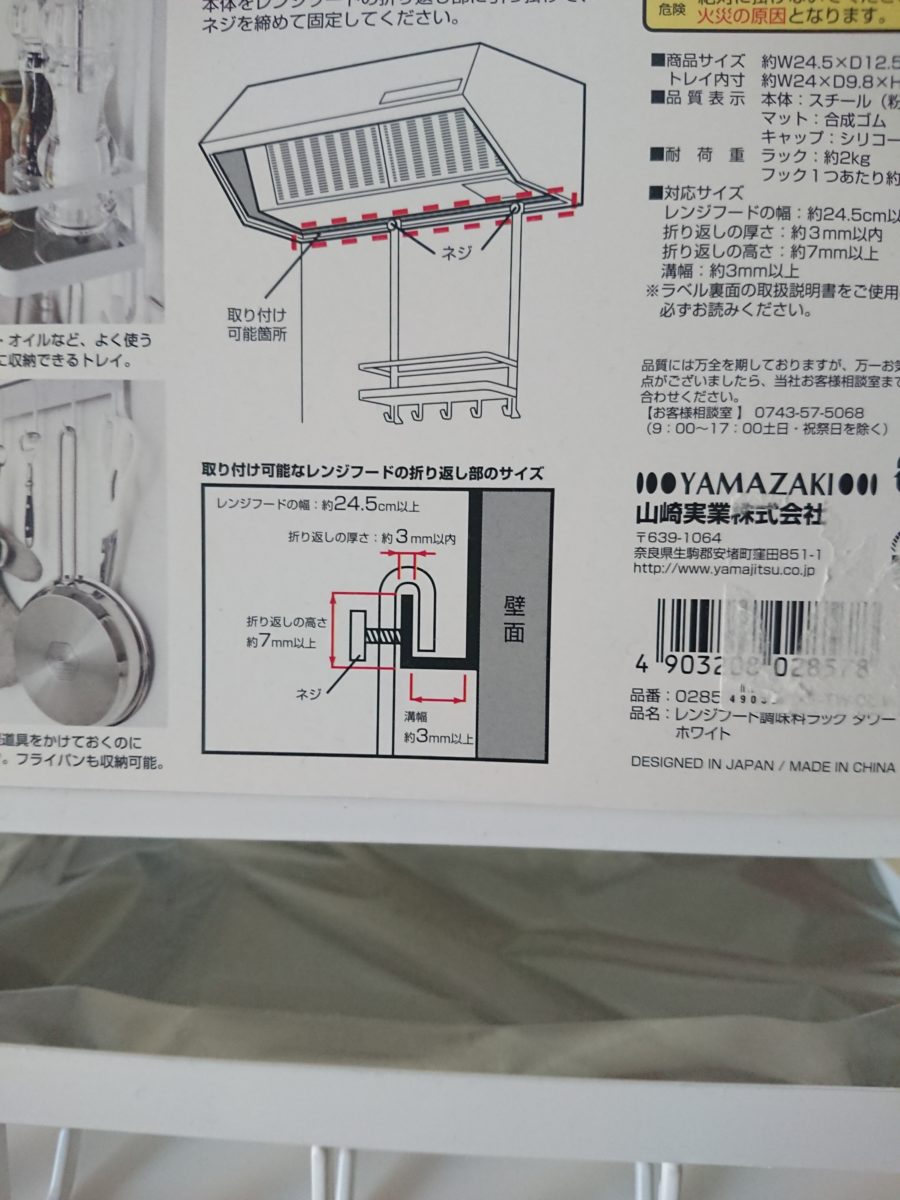 キッチンフードに取り付ける小物ラックでした。