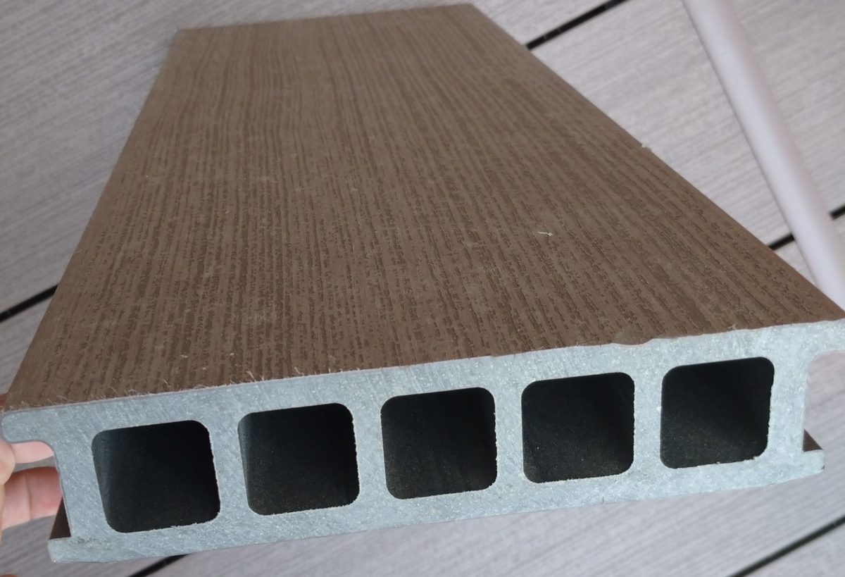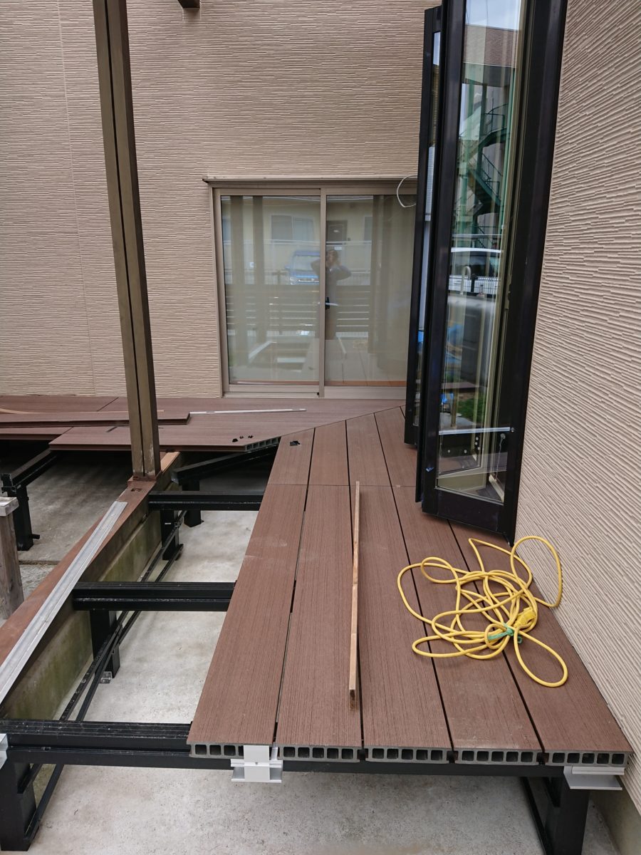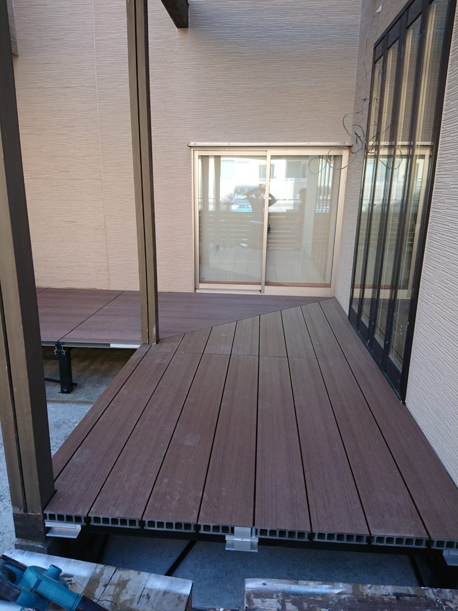 ついに、事務所裏に人工木を使った、