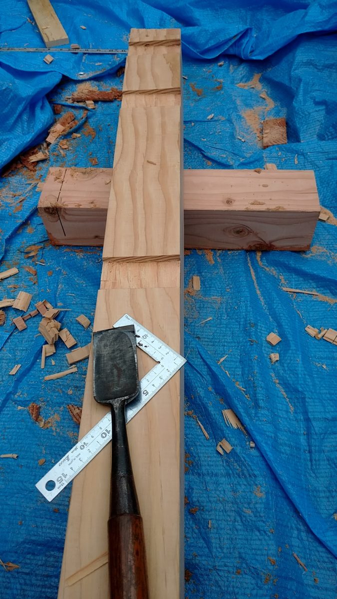 下端は高さがないので、梁と母屋で十字相欠き継ぎで加工します。