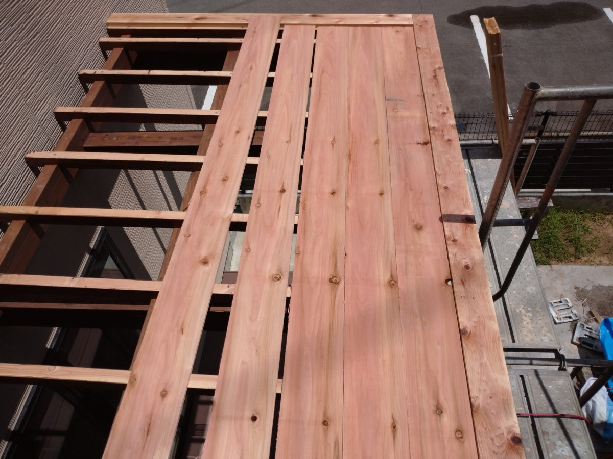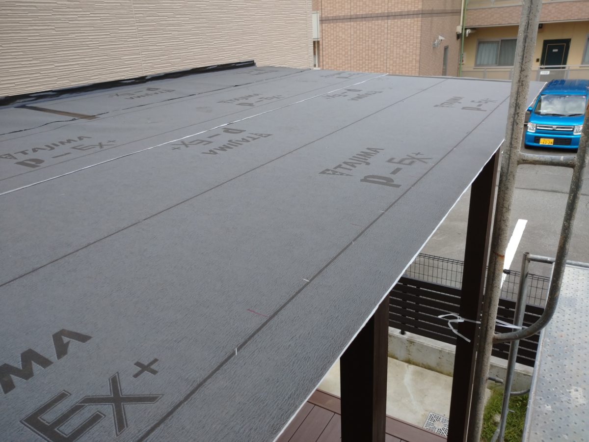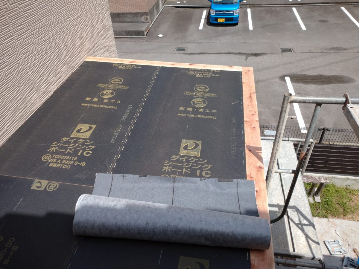 その後は、淀→野地板→シージングボード→ルーフィングで