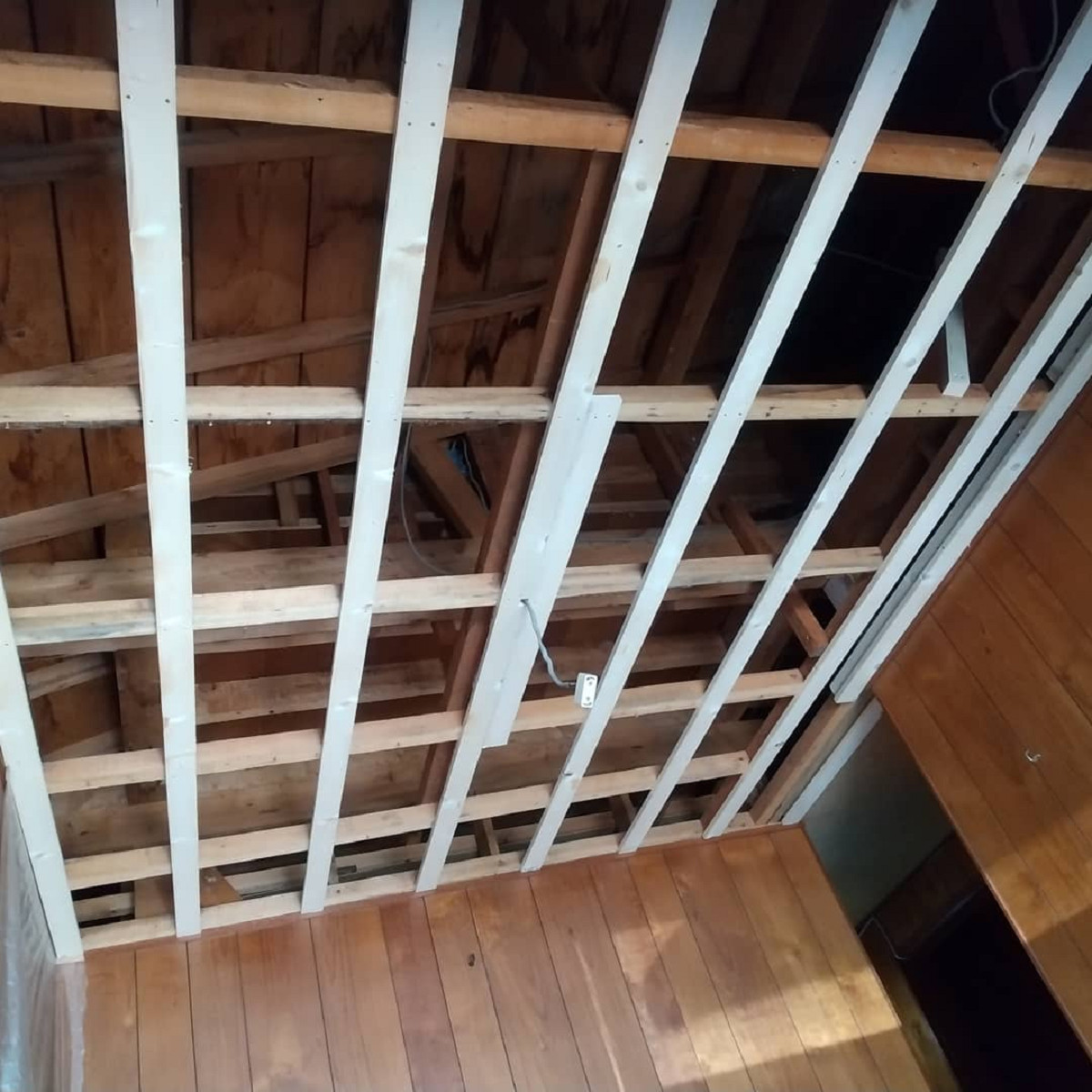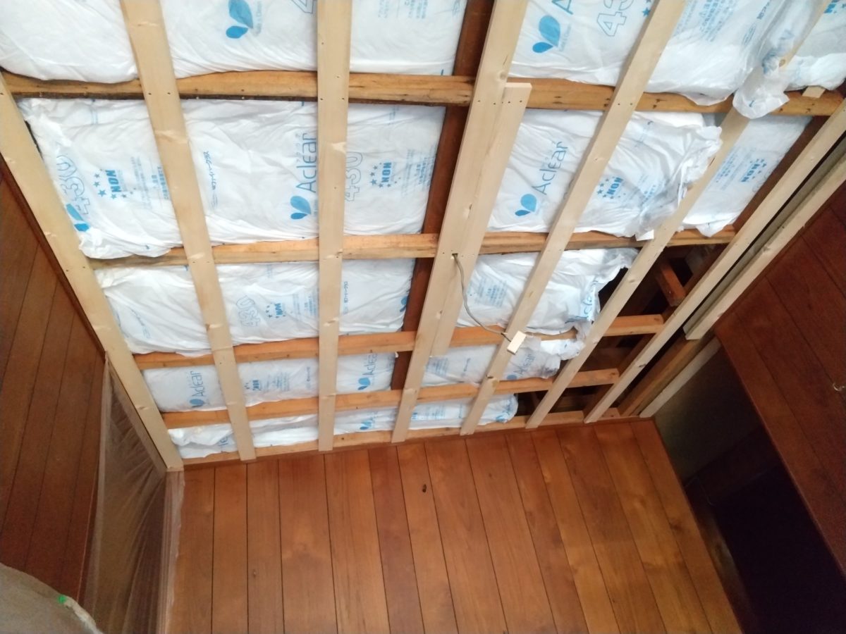 屋根下の天井(床は玄関土間なので無し)復旧工事を